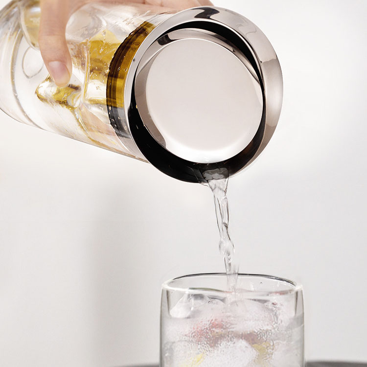 傾倒自動(dòng)倒水,傾斜倒水,壺蓋不掉落,輕松過(guò)濾,出水流暢。304不銹鋼圓潤(rùn)瓶蓋:不銹鋼蓋子,圓潤(rùn)大口設(shè)計(jì),隨心轉(zhuǎn)動(dòng),防側(cè)漏設(shè)計(jì)。適用于多種涼水壺,該產(chǎn)品是SOLO涼水壺,適配的不銹鋼蓋子。高硼硅玻璃,耐高低溫,高硼硅玻璃材質(zhì),高硬度,耐-20°C- 150°C瞬間溫差。開(kāi)蓋方便,密封防塵,304不銹鋼加固壺蓋,密封圈防掉落。304不銹鋼,遇熱不會(huì)析出有害物質(zhì),不易生繡、不滋生。硅膠+平衡吊墜,濾芯采用硅膠材質(zhì),密封性好。吊墜起平衡作用,防止濾芯掉落。靈活倒水,不銹鋼擋片,可靈活倒水,平放時(shí)可當(dāng)防塵蓋。